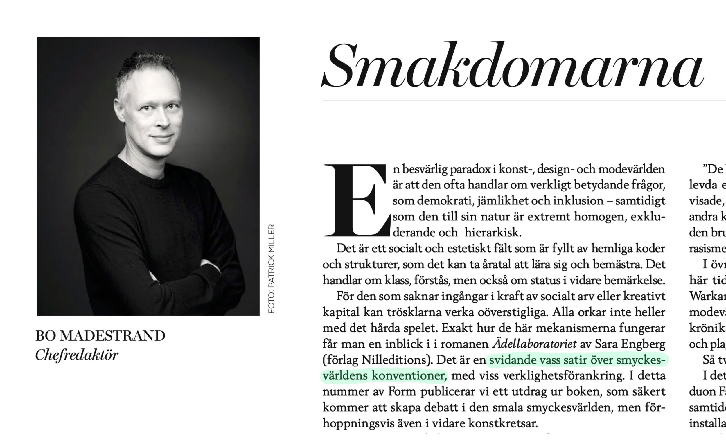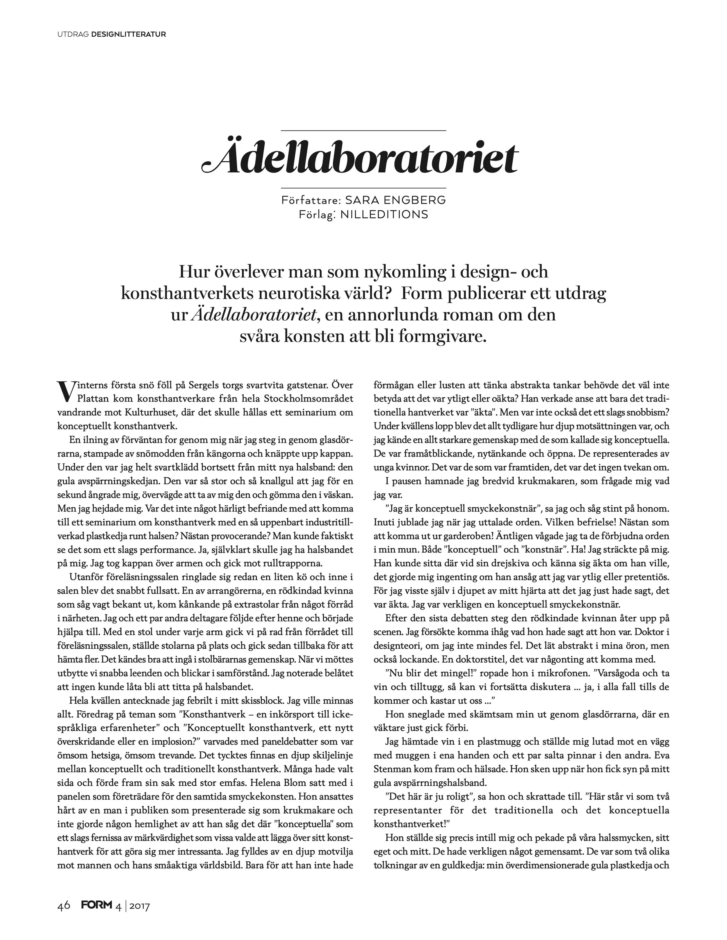 An extract from Ädellaboratoriet was published in FORM Magazine no 4, 2017: